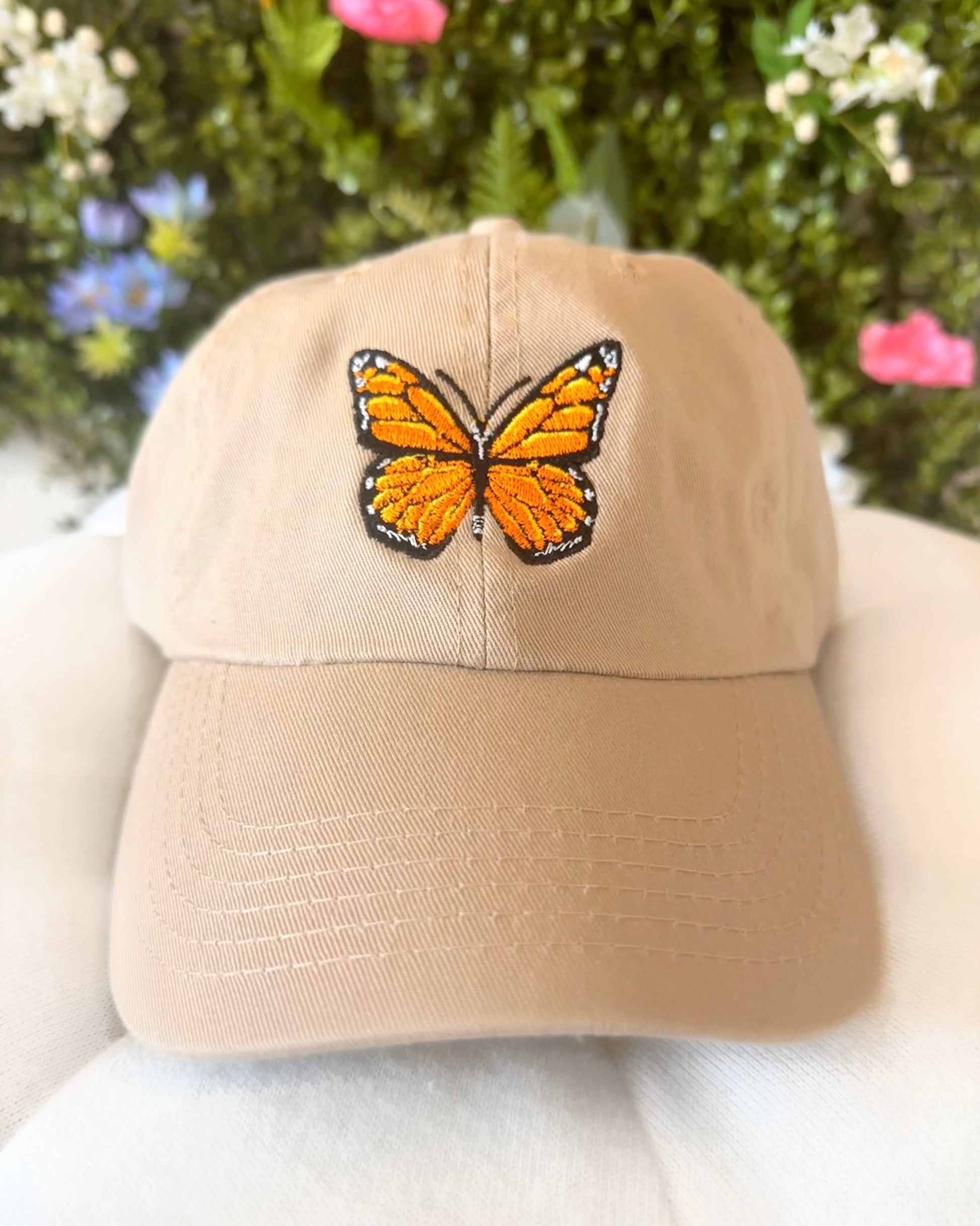 Sombrero color canela con forma de mariposa